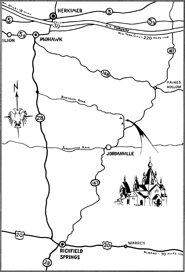 ROUTE 20 - To Richfield Springs, then Route 167 (North) at Richfield Springs. The Seminary is about a mile past Jordanville.