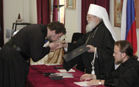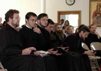 The day also held special significance for the seminary since three of its students were ordained at the Divine Liturgy celebrated that morning. Hierodeacon Evtikhi, a member of the second year class, was ordained to the priesthood. Reader Seraphim Chemadakov became a subdeacon, and fourth year seminarian Sergei Serjanov was made a reader.
