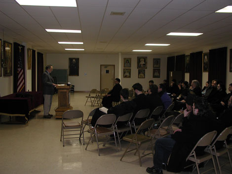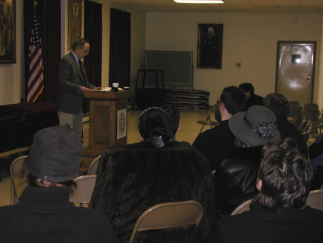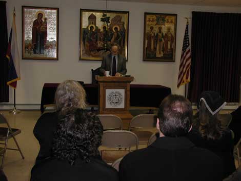 The event attracted students as well as members of the clergy, the monastery brotherhood, and the local community. After the opening prayer and the introduction of the speaker, Prof. Klimoff began by sharing some recollections of his many meetings with Reverend Florovsky in the 1960s and 70s. The central theme of the lecture was based on archival materials preserved in the Florovsky Papers housed in the Priceton University Library, including correspondence between Florovsky and Bulgakov in the mid-1920s. At the root of the the theological difference between the two men, Prof. Klimoff suggested, was sharp disagreement over the value of the legacy of Vladimir Solov'ev, whom Bulgakov admired, and Florovsky held to be detrimental to the development of Russian thought.