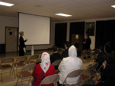 On May 7, 2003 Holy Trinity Seminary was privileged to host a lecture given by Professor Priscilla Hunt, a Five College Associate from Amherst, MA on "The Wisdom Icon and the Star: At the Intersection of Aesthetics and Theology". Professor Hunt explained, in a fascinating talk, which included slides illustrating her presentation, what many of us overlook. In many icons there appears an iconographic representation of light behind the Saviour. The geometric symbols used by the iconographer combine to form a star and a circle. Professor Hunt explained, "I will look at these composition's surface imagery from the point of view of two geometrical symbols respectively, the double triad and the circle. I will then describe how these meanings are embedded in the hidden geometrical symbolism of the star if seen with the intellectual eyes. I will thus show that the star crystallizes the function of the iconography to symbolize God's manifestation as light." Through the use of Scripture, Holy Fathers, and diagrams Prof. Hunt brought the audience's attention to the fact that what we observe is not just ornament or simple iconographic representation of heavenly light but in fact something with a far greater theological significance than is immediately apparent to the uninformed worshiper. Our understanding of the theological/aesthetic meaning of these representations was greatly enhanced and deepened by Professor Hunt's presentation, for which we are very grateful.