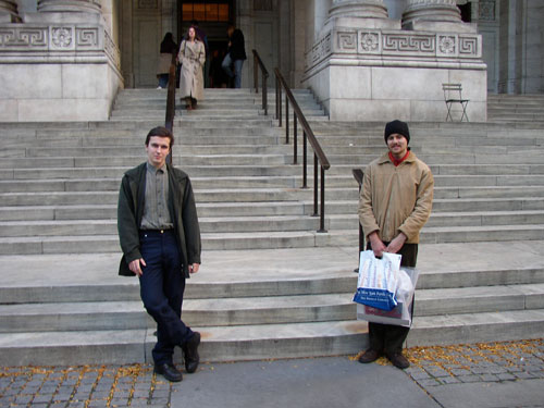 On the morning of Friday, October 24, the Rev. Deacon Vladimir Tsurikov, Assistant Dean of Holy Trinity Seminary, drove a group of third and fourth year seminarians to New York City. Their first stop was the headquarters of the Synod of Bishops of the Russian Orthodox Church Abroad on the corner of 93rd and Park, in the Upper East Side of Manhattan. After finding their rooms and taking a brief rest, the group proceeded to The New York Public Library, where they were met by Dr. Edward Kasinec, Director of the Slavic and Baltic Division, and likewise joined by Dr. Natalia Kazakova of Long Island University, who had recently given a talk on V.V. Rozanov and A. S. Khomiakov at the Second Annual Holy Trinity Seminary Colloquium. Mr. Kasinec gave the group a personal tour of The New York Public Library's exhibit, "Russia Engages the World: 1453-1825," which runs from October 3, 2003 to January 31, 2004.