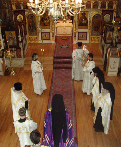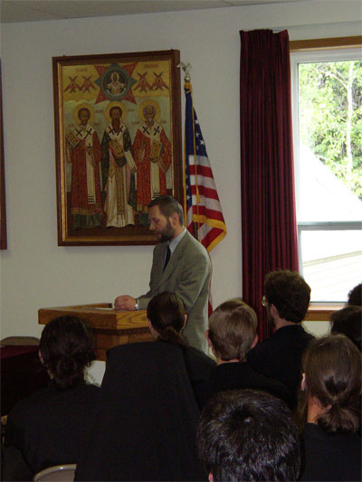 The ceremonies began with a Service of Thanksgiving (moleben) served by Bishop Peter, accompanied by several priests and deacons, in Holy Trinity Cathedral. Following the completion of the service, all proceeded to the seminary auditorium, where Archimandrite Luke, Dean of Seminary, officially opened the Commencement exercises. A quintet of seminarians, under the direction of fourth-year student Nathan Williams, sang the American and Russian national anthems. Archimandrite Luke then read a greeting from His Eminence, Metropolitan Laurus, Rector of Holy Trinity Seminary, congratulating those students who had finished their studies and greeting the remaining students on the occasion of the completion of the academic year. Bishop Peter offered a few words on the necessity of service to the Church, emphasizing that Christ's field is always in need of servants.