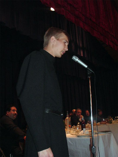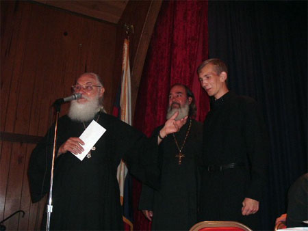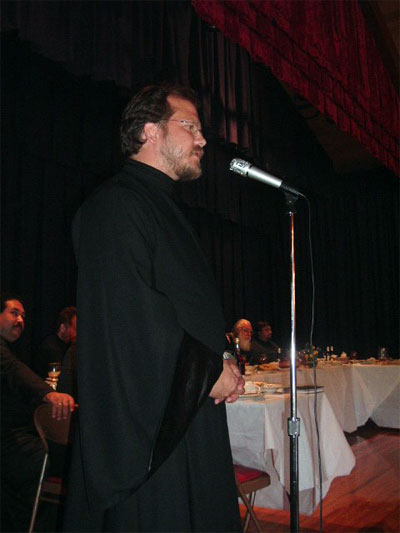 The cathedral's rector warmly invited all present to share a festive meal in the parish hall. After several speeches, Fr. Valery Lukianov officially announced this year's recipient of the St. Alexander Nevky Parish scholarship. Constantine Nogovistyn, a young seminarian from Ishim (Siberia) was chosen to receive a $1,500.00 scholarship towards his tuition. Constantine thanked the parish for their generosity and spoke about his life growing up in Siberia and his decision to become a seminarian. Afterwards, Fr. Deacon Vladimir Tsurikov addressed the congregation and remarked on the longstanding relationship between HTS and the St. Alexander Nevsky parish.