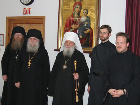 The Seminary was pleased to welcome His Grace, Bishop Peter of Cleveland, who concelebrated with His Eminence, Metropolitan Laurus, during the Vigil and Divine Liturgy. During the Small Entrance at the Liturgy, Metropolitan Laurus awarded Hieromonk Roman (Krassovsky) the right to wear the Gold Cross in recognition of his many labors, which include heading the Holy Trinity Seminary and Monastery choir and teaching church music in Seminary. Hieromonk Roman is himself a graduate of Holy Trinity Orthodox Seminary (class of 1984). During the reception following the Divine Liturgy, Metropolitan Laurus awarded Alexis Pjawka, a fouth-year student, the Holy Trinity Seminary Scholarship in recognition of scholastic and disciplinary excellence.