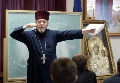 Archpriest Michael Oleksa, author of Orthodox Alaska: A Theology of Mission and editor of the anthology Alaskan Missionary Spirituality, gave a lively and erudite talk in the Seminary auditorium on the history of Orthodox in Alaska, which was received with great interest and appreciation by all present.