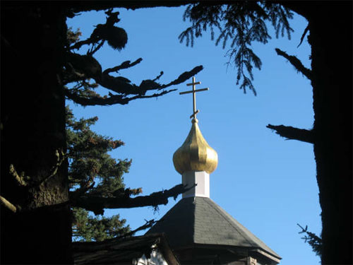 On Monday, October 16, following the celebration of the Divine Liturgy, a group of thirty-one made preparations for their trip to Spruce Island in a fishing boat operated by one of the Native Orthodox faithful. They departed from the Port of Kodiak to the village of Ouzinkie, where they docked for a visit to Holy Ascension Church and a trip to the village general store for supplies. Upon reaching Monk's Lagoon, participants boarded a small boat that took them to the shores of Spruce Island. The afternoon on Spruce Island was crowned with an Akathist Service to St. Herman celebrated in the Sts. Sergius and Herman of Valaam Chapel.