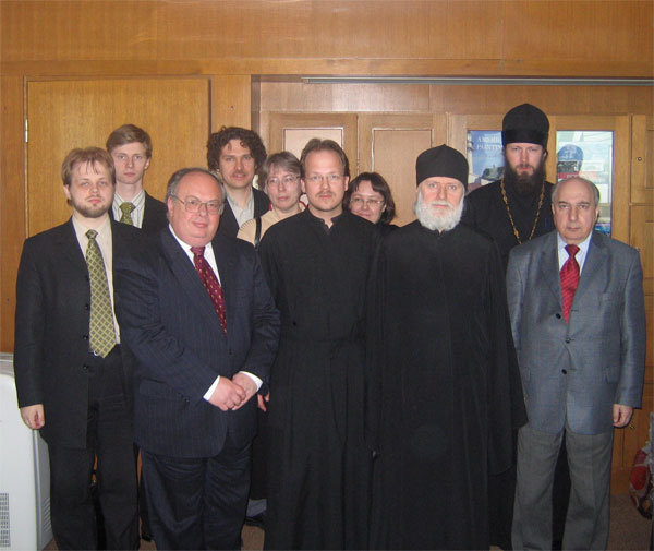 Following up on a meeting held on March 16, 2007, the Editorial Board of a proposed five-volume history of Russian Orthodoxy in the Diaspora met on April 17, 2007, at the Academy of Sciences in Moscow. The meeting was chaired by Archbishop Evgeny, rector of the Moscow Theological Academy and Seminary, and was attended by A.O. Chubarian, M.V. Bibikov, deacon Vladimir Tsurikov, A.L. Beglov, E.S. Tokareva, N.T. Eneeva, A.A. Kostriukov, hieromonk Evfimy (Moiseev), hieromonk Savva (Tutunov), A.A. Larionov, and D.A. Popovsky.