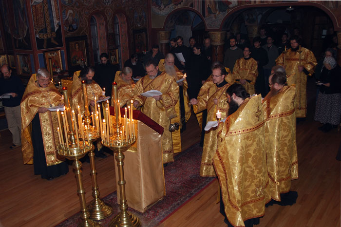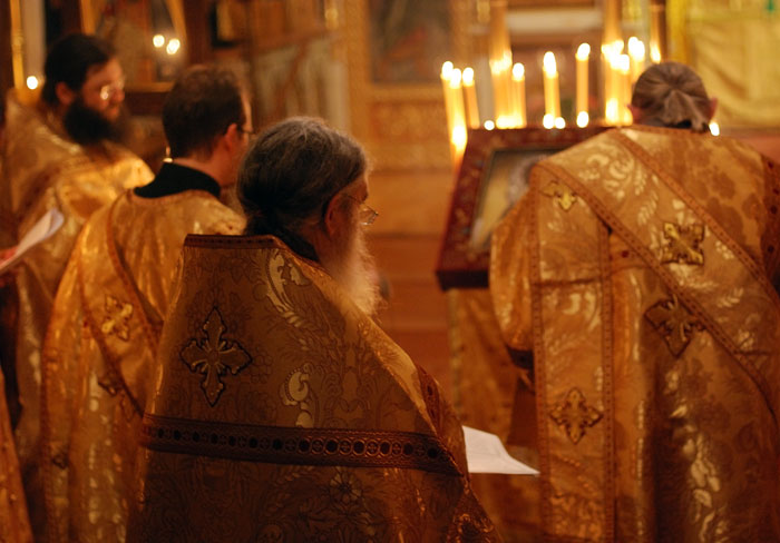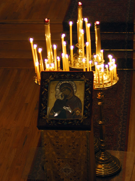 served by Arkhimandrite Luke (Murianka) together with both visiting and local clergy. The seminarians, monks, local and visiting clergy, and many Orthodox faithful were in attendance. At the end of the service, icons of St. Anna, blessed on the original Myrrh-streaming icon, were distributed to the faithful during the veneration of the icon. Fr. Athanasy offered a sermon, which included a history of the importance of St. Anna in his life, as well as a brief history of the myrrh-streaming icon. The brotherhood and Seminary communities were blessed with the icon’s presence in church at Divine liturgy the following morning. While this has been the first visit of the Myrrh-streaming icon of St. Anna to Holy Trinity Monastery and Seminary, we hope that we will be blessed with its presence in the future, and wish to thank Fr. Athanasy for making the journey to Jordanville.