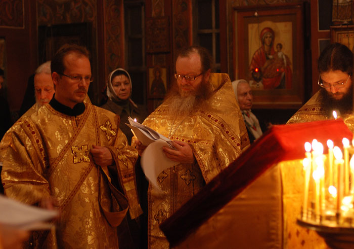 On Monday, November 12, 2007, the Myrrh-streaming icon of St. Anna was brought to Holy Trinity Monastery and Seminary by its guardian, Archimandrite Athanasy (Mastalsky). Fr. Athanasy was accompanied by Abbott Tikhon (Amelchenya) and Hieromonk Nikolai (Perekrestov). After small compline, a moleben with an akathist to Sts. Joakim and Anna was