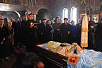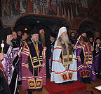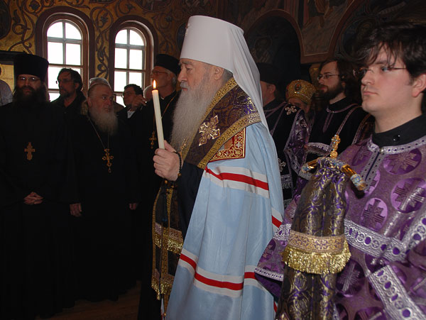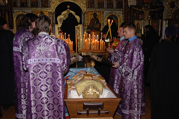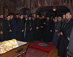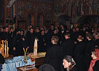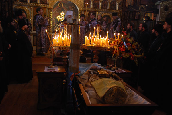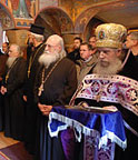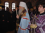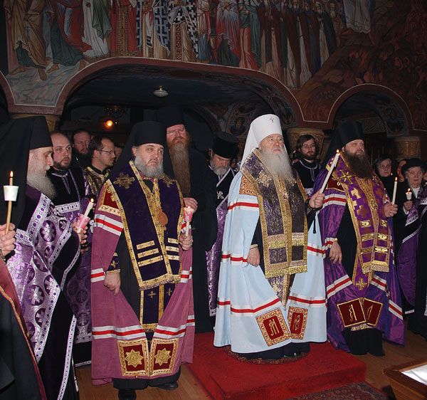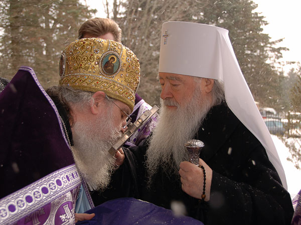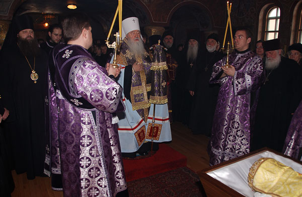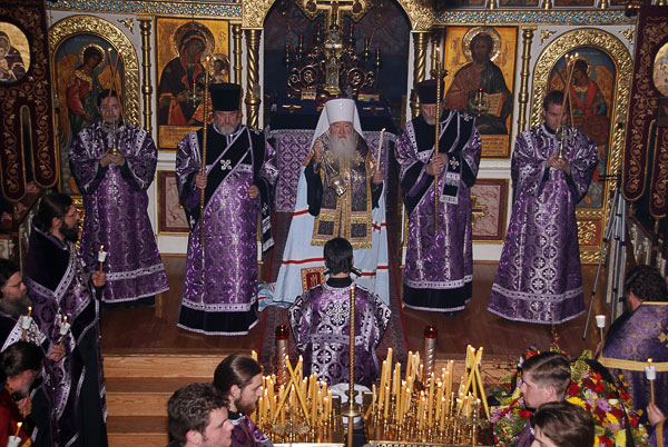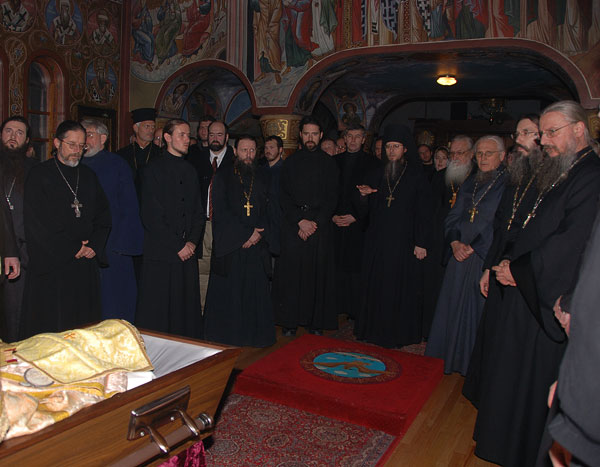 His Eminence, Metopolitan Yuvenaly of Krutitsa and Kolomensk arrives at Holy Trinity Monastery for the funeral of the First Hierarch of the Russian Orthodox Church Outside Russia, and serves a panikhida with monastery and visiting clergy