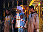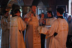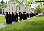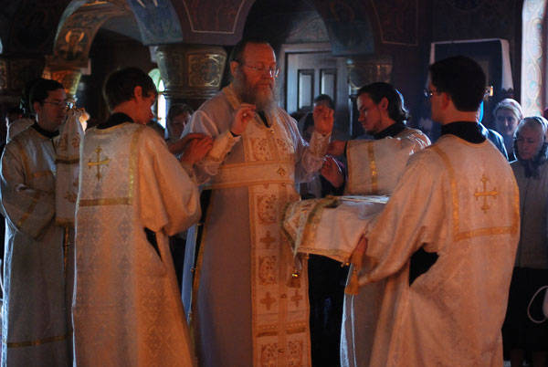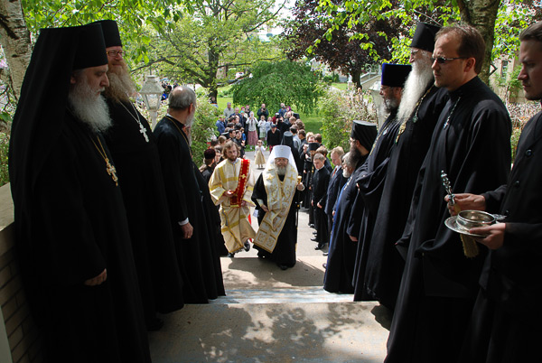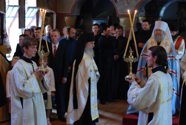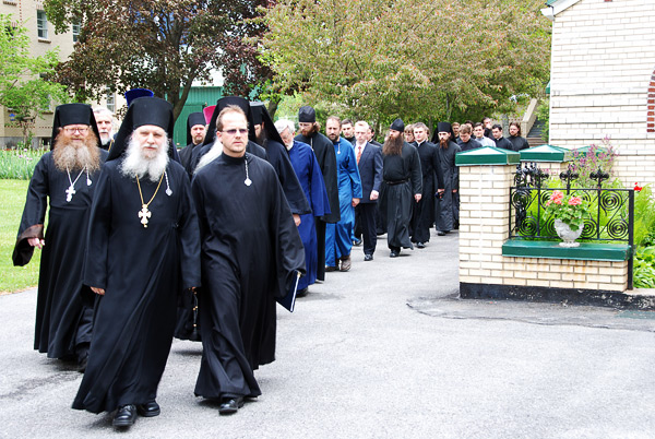 On Sunday June 01, Holy Trinity Seminary celebrated commencement ceremonies for the graduating class of 2008. His Eminence,Metropolitan Hilarion of Eastern America and New York presided over the ceremonies, having celebrated the Divine Liturgy on the same morning and the All-night Vigil on Saturday night. The graduates, along with other students, participated in the Divine Services as clergy, altar servers, and on cleros. At two o-clock in the afternoon, the Seminary and Monastery community gathered in the Holy Trinity cathedral for the Thanksgiving moleben,which was presided over by His Eminence, Metropolitan Hilarion, who was joined by the newly assigned acting rector, Archimandrite Luke, the Dean of Students, Hieromonk Theophylact, the Seminary’s administrative assistant, Deacon Alexej Pjawka, and Hierodeacon Seraphim Baltic, representing the graduating class of 2008.