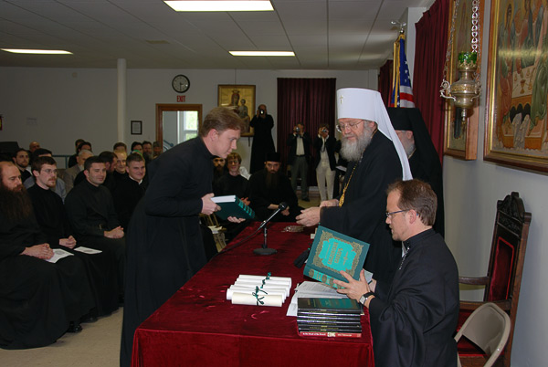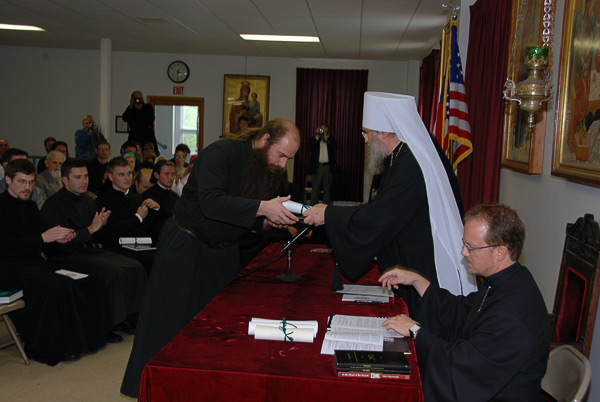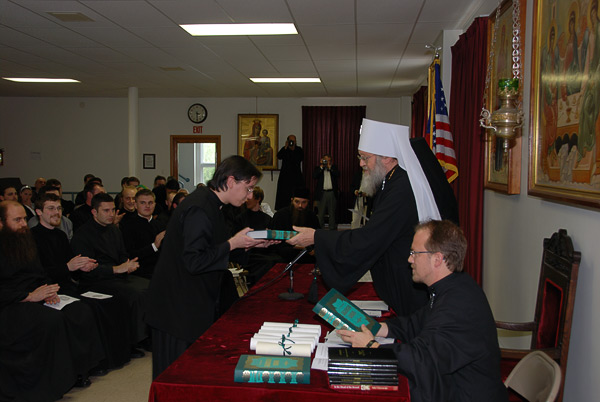 The acting rector, Archimandrite Luke, offered opening remarks, and welcomed the clergy, students and guests. His Eminence, Metropolitan Hilarion, congratulated the graduating class, and offered his thoughts on the significance of their completed spiritual path.