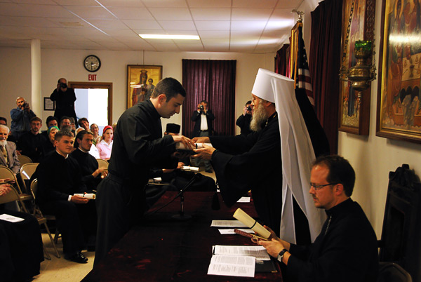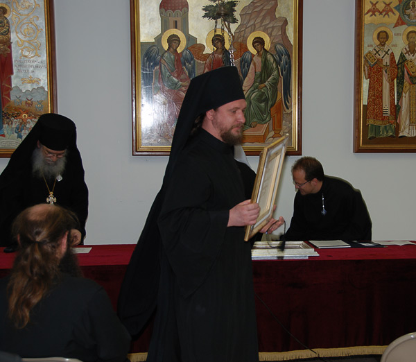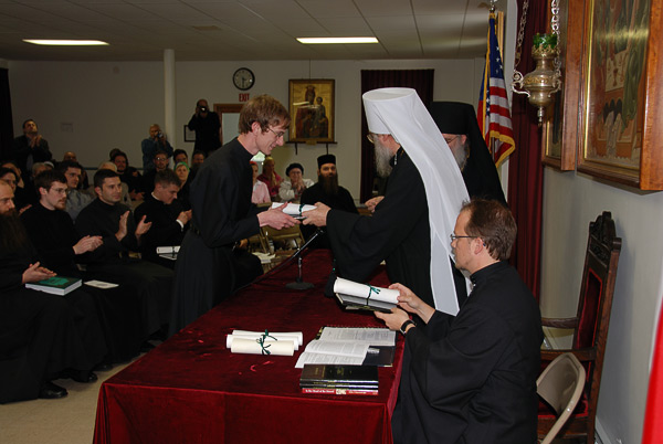 Following the graduating address, awards for academic distinction were presented to the following students of the Seminary – Jovan Marianаc, Ephraim Willmarth, Sergio Silva, Vladimir Davydov, and novice Sergei Tkac.
