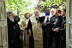 Metropolitan Hilarion, blessed an icon of the Old Testament Holy Trinity, which had been placed above the main entrance into the Seminary. This work had been completed by the one of the graduates of HTS, iconographer and reader Alexei Lemmer, who will continue his studies in the art of iconography at the Moscow Theological Academy beginning September of 2008.