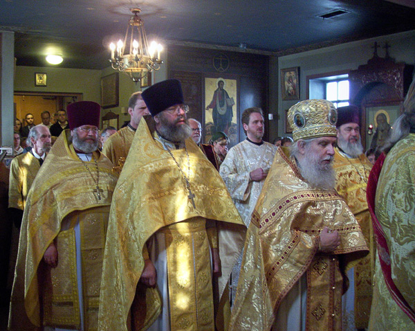 His Grace, Bishop Peter of Cleveland, officiated at the All-night vigil and at Divine Liturgy.  Faculty and seminarians of Holy Trinity Seminary served in the altar and sang in the choir, including the rector of HTS, Archimandrite Luke (Murianka), Archpriest Gregorgy Naumenko, and Dimitry P. Anashkin.