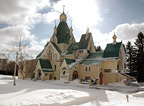 After the meeting officially ended, some of the students took advantage of the beautiful weather and went walking up to the cross overlooking the property of Holy Trinity Monastery. After singing the troparion to the Cross in Greek, Slavonic, and English, they went sledding down the hill.