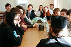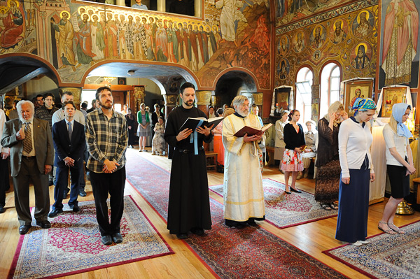 The retreat officially began on Saturday, May 23, following the morning liturgy and breakfast in the monastery refectory, which was attended even by those who arrived late in the evening before. Retreat organizer and seminarian Michael Perekrestov welcomed the participants to Holy Trinity Monastery. Graduating seminarian Vladimir Davydov gave a lecture based on his bachelor’s thesis, which focuses on the cemeteries of Holy Trinity Monastery. After the lecture, all took part in a litya for Metropolitan Laurus and the reposed mentioned in the lecture.