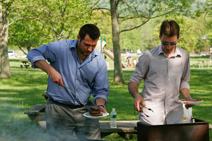 Afterward, all went to Glimmerglass Park on Lake Otsego for a barbсue. By God’s Providence, the clouds cleared and the weather was beautiful. There was a soccer game, Frisbee, swimming, and singing songs. All were very grateful to God for this time together. The group returned to Holy Trinity Monastery in time to attend small compline. After the service, all attended a bonfire on the Monastery property. Many talented individuals played guitar and sang songs, including traditional Russian and Cossack songs, Irish ballads, American spirituals, and popular music. All enjoyed listening and eating s’mores.
