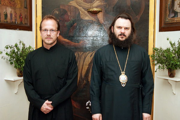 On June 10, the Rector of the Saint Petersburg Orthodox Theological Academy, Bishop Amvrosii of Gatchina, met with the Dean of Holy Trinity Orthodox Seminary, Protodeacon Vladimir Tsurikov. The reception was also attended by Priest Dmitrii Iurevich, Academic Dean of the Academy.