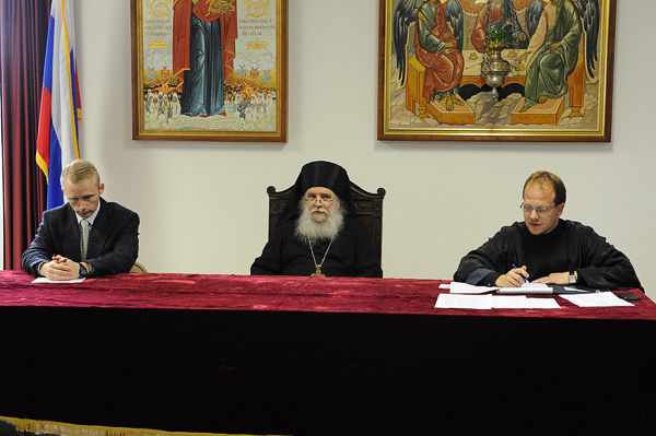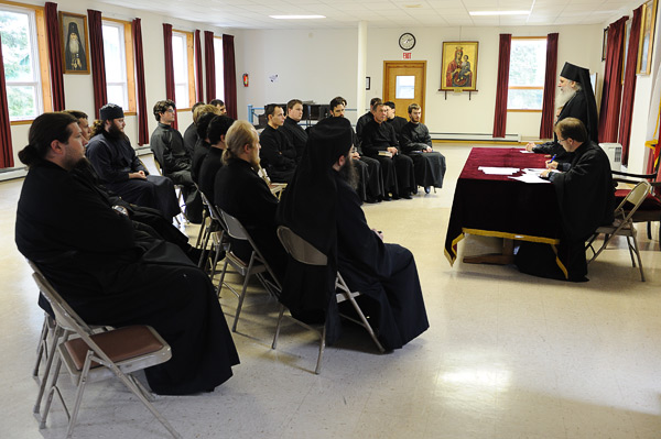 The official greeting took place on Friday, September 18th. Archimandrite Luke and Protodeacon Vladimir Tsurikov, the Seminary’s Dean, greeted the student body in the seminary hall. During the meeting with the students, Fr. Luke offered the students his recommendations for a successful stay at the seminary, and stressed the importance of active involvement in the liturgical life of the monastery.