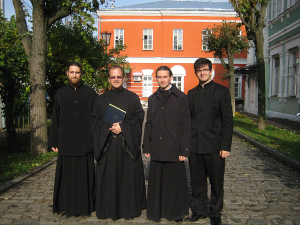 During his visit to the Moscow Theological Scools, Protodeacon Vladimir met with several representatives of Holy Trinity Seminary – graduate Aleksei Lemmer, currently studying at the School of Iconography at the Academy, and seminarians Eduardo Volkov and Miodrag Radovanovich, who are currently spending a year at the Moscow Theological Seminary as a part of cooperative program between our seminaries.