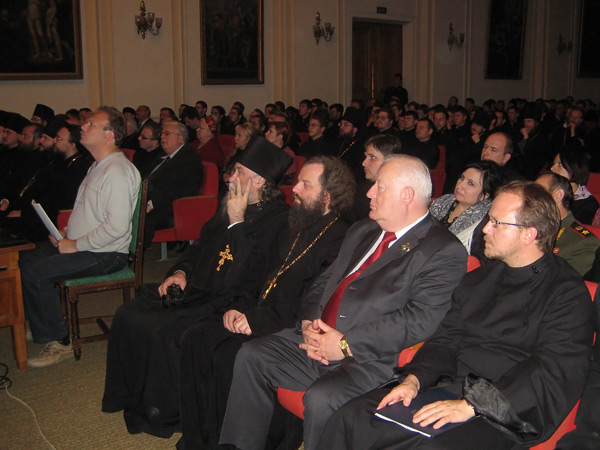 At the official ceremony, which took place after the Divine Liturgy, Archbishop Evgenii gave introductory remarks and the annual report about the activities of Moscow Theological Schools over the past year. Following this, Archimandrite Makarius (Veretennikov) presented the keynote address titled “The Patriotic service of the Holy-Trinity-St.-Sergius Lavra during the Time of Trouble”.