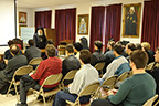 Archimandrite Luke, the Rector of Holy Trinity Seminary, led the moleben in concelebration with the Seminary’s Dean Archpriest Vladimir Tsurikov, Dean of students Hieromonk Cyprian (Alexandrou) and Faculty member Deacon Andrei Psarev. Seminarians, teachers and all the faithful prayed for a blessed and prosperous school year. Following the breakfast at the refectory students gathered in the seminary hall to attend to official greeting from the Rector and Dean of the Seminary. In his welcoming speech Fr. Luke encouraged students for diligent studying in the started academic year. After the singing of "It is truly meet" the Rector blessed the new seminarians to wear the cassock and belt.