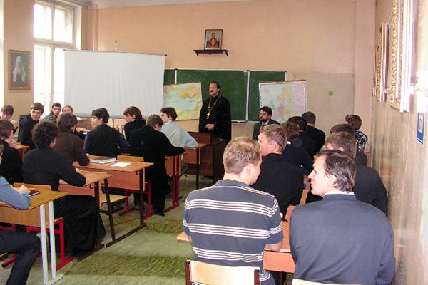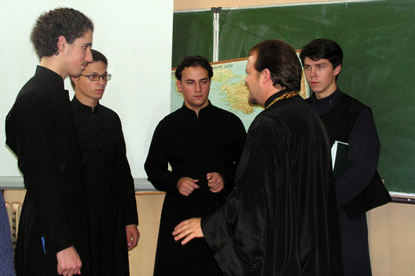 On Saturday, September 18, 2010, the Dean of Holy Trinity Seminary, Archpriest Vladimir Tsurikov, received an invitation from Dmitrii Vladimirovich Safonov to meet with students of Sretenskaia Seminary. During the course of the meeting, the seminarians were able to address various questions of interest to Fr. Vladimir. The same day, Father Vladimir gave an interview on the popular Orthodox radio channel “Radionezh”, which was aired on September 23. In this interview he spoke about the cooperative projects between Holy Trinity Seminary and the Russian State Archives, introduced the listeners to new seminary magazine “Troitskoe nasledie”, shared his memories about the late Metropolitan Laurus, and reflected on the visit of Archpriest Artemii Vladimirov to the US. The broadcast also included the a recording of Fr. Vladimir’s meeting with seminarians of Sretenskaia seminary, which took place earlier the same day.