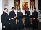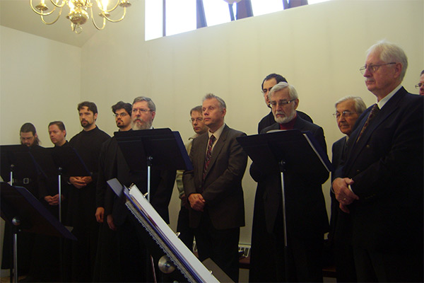 At the end of the presentation, HTS Choir gave a concert of church music including Trubachev’s “Virgin Theotokos, Rejoice”, Archimandrite Nafanil’s “Polyeleos”, Trubachev’s setting of the Kontakion of the Protection of the Theotokos, and his “Ton Despotin”, all of which are selections of chant sung at Holy Trinity Monastery.