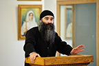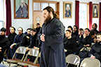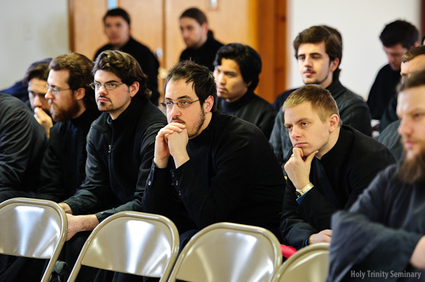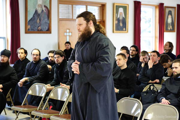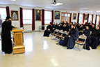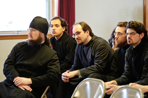 Fr. Peter served the festal Vigil and Liturgy alongside the brotherhood clergy, pronouncing the exclamations and prayers in the Georgian language. On the following morning Fr. Peter met with the seminarians, faculty members and brotherhood to talk about the Georgian Orthodox Church and to answer any questions that they might have.