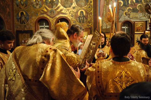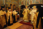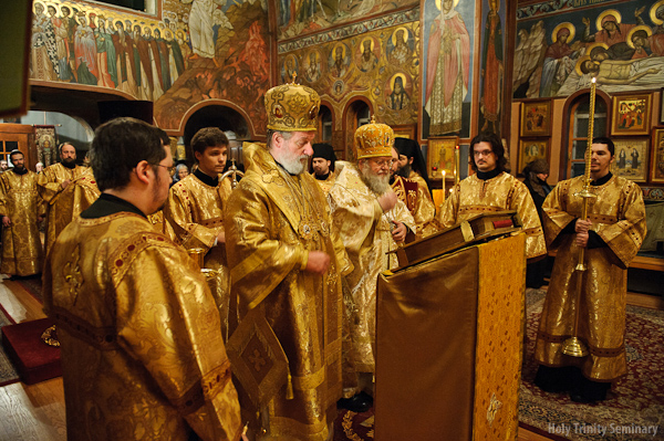 Metropolitan Christopher then visited the monastery museum, the seminary library and was given a tour of the monastery grounds. Metropolitan Christopher served a short panikhida at the tomb of Metropolitan Laurus and concelebrated the All-Night Vigil with Metropolitan Hilarion in the Holy Trinity cathedral, after which the guests departed for New York.