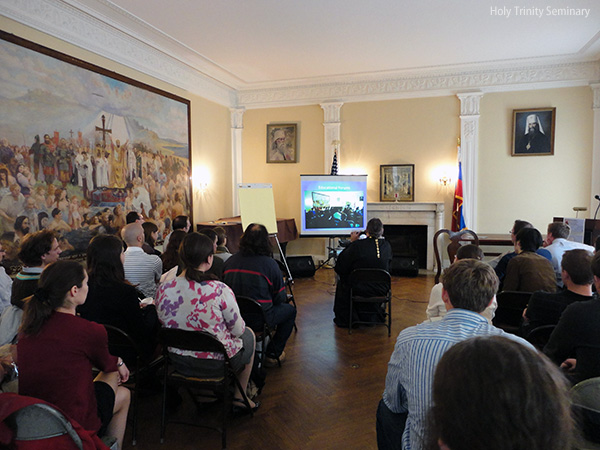 On October 15, Hieromonk Cyprian (Alexandrou) spoke at the 3rd Annual Youth Symposium, held at the Synodal Cathedral of the Sign in New York City. Three seminarians participated in the symposium with him. Fr Cyprian spoke about mission work in the Orthodox Church today, following the theme of the symposium. Citing examples like St. Innocent of Moscow and St. Nicholas of Japan, He emphasized the need for individual repentance and spiritual growth before beginning any missionary activity. Fr Cyprian and the seminarians also took part in the afternoon discussions at the symposium regarding possible future events.
