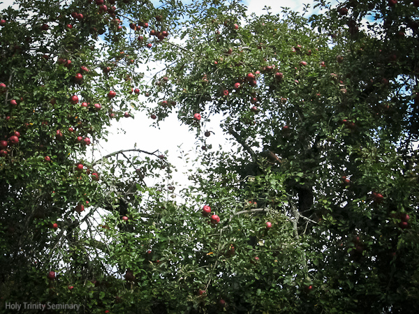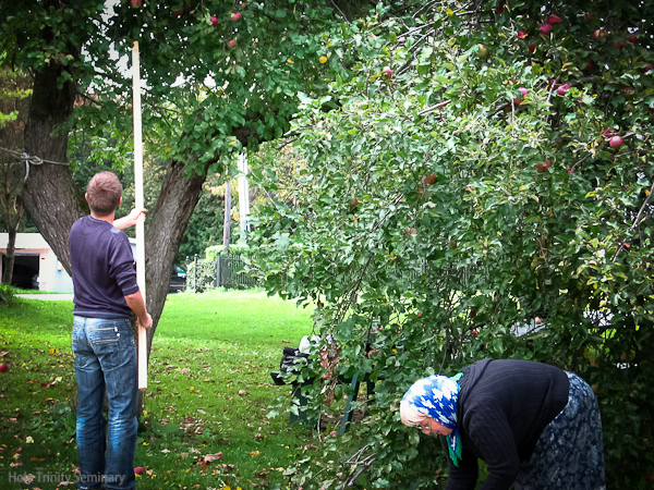 On September 22, seminarians picked enough apples to bake 20 pies, bottle 155 gallons of cider, and fill dozens of jars with preserves. The apple picking was part of a general obedience blessed by Archimandrite Luke (Murianka), the abbot of Holy Trinity Monastery. Hieromonk Cyprian (Alexandrou) organized students into work groups.