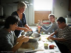 The apples were then hauled into the summer kitchen. Some pious pilgrims worked very hard with the seminarians to bake pies and make preserves. One of the pilgrims said, “I am so very happy to have had the chance to do this. I didn't know I could.” The rest of the apples went to a nearby cider mill the next day.