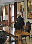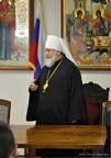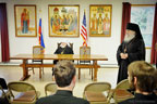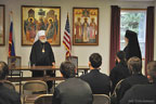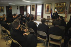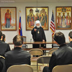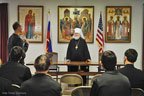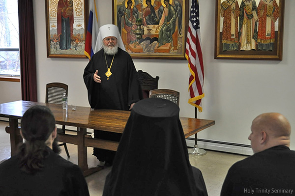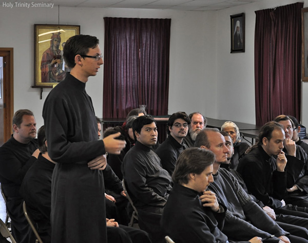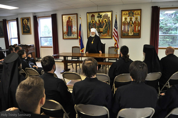 At the request of the Rector of HTS, Archimandrite Luke, Metropolitan Hilarion met with all of the seminarians for an informal talk. Following a brief address, the students took advantage of this opportunity to ask the Metropolitan for his perspective and pastoral guidance concerning large and important issues of our time, including the mission of ROCOR, the convening of the Episcopal Assembly, the relationship of the Russian Church with other jurisdictions and other topics.