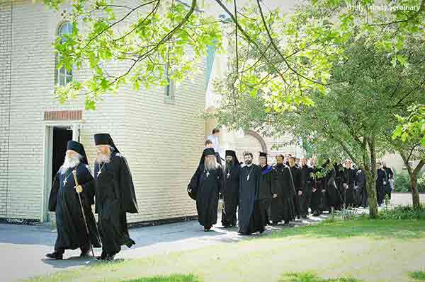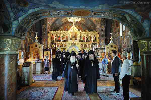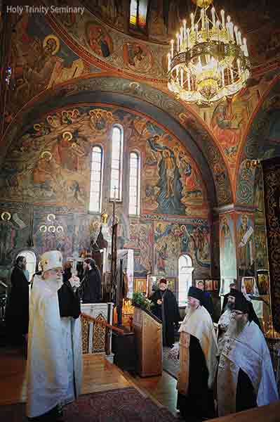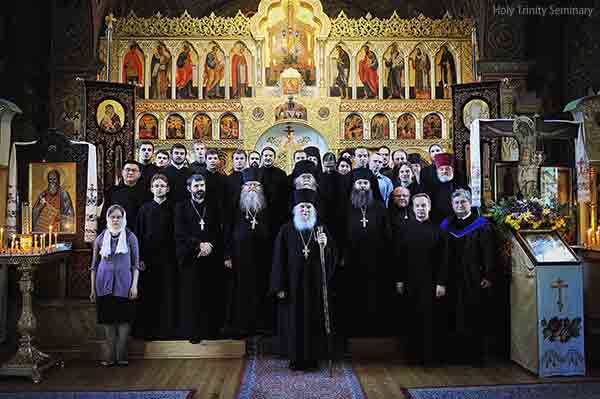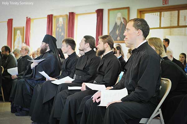 Holy Trinity Orthodox Seminary held its Sixty-Fourth Annual Commencement on Sunday, May 27, 2011. The ceremonies began at two o’clock in the afternoon with a Thanksgiving Moleben served by Archimandrite Luke and the Monastery clergy in the Holy Trinity Cathedral. A commemorative photograph was taken, and then the clergy, faculty, and students walked in procession to the Seminary Hall for the commencement exercises.