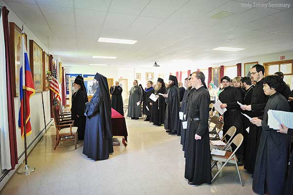 The ceremony began with the pre-revolutionary Russian and United States national anthems, sung by the Holy Trinity Seminary Choir under the direction of third-year student Nicholas Kotar.