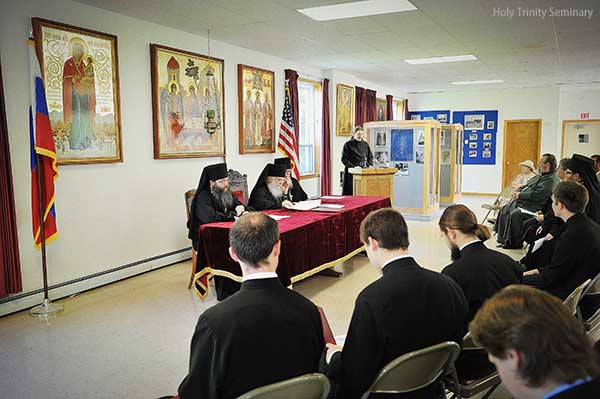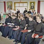 Awards were then issued for high academic performance: Aleksander Brooks in first year; John Martin in second year; Nicholas Kotar in third year; Monk Seraphim in fourth year; and Dmitry Anopochkin and Sergey Tuygin in fifth year. For academic excellence first-year students Aleksander Brooks and Stanislav Matveev received stipends of $700 and $300 respectively, courtesy of Michael Andreev of the Jordanville Monument Company.