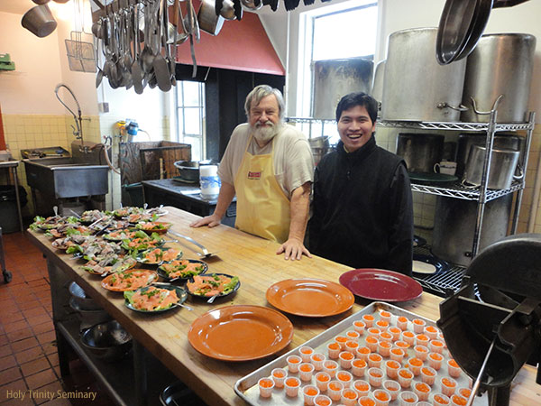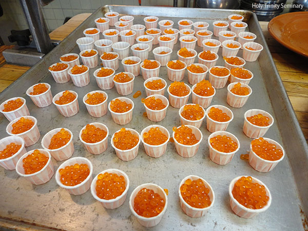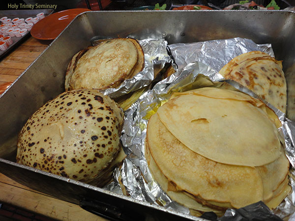 After allowing other worthy chefs to serve the brethren for a couple of years, Fr. Victor emerged from “retirement” with something better: “I finally found a good recipe this year,” he said. Not only was it a good recipe, but he and his wife were up early in the morning to prepare the blini by themselves. A couple of seminarians helped with the final preparations. We would like to thank Father and Mrs. Victor Lochmatow for their dedicated service to Holy Trinity Monastery and Seminary for so many years and in so many ways.
