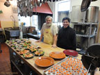 On Friday, February 24, Protodeacon Victor Lochmatow served a special treat at the lunchtime trapeza at Holy Trinity Monastery: blini with traditional Russian toppings including herring and salmon which he had cured himself. Fr. Victor has prepared blini at the monastery during Cheesefare Week for many years, with willing help from seminarian volunteers.