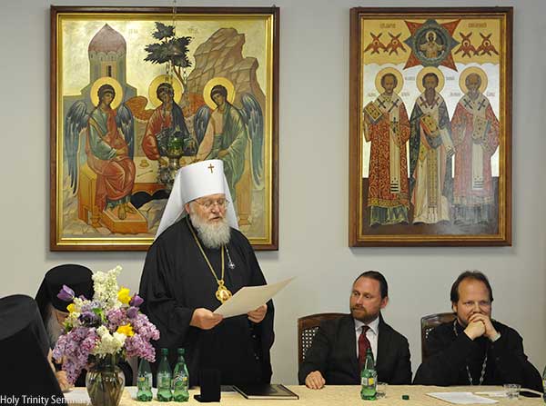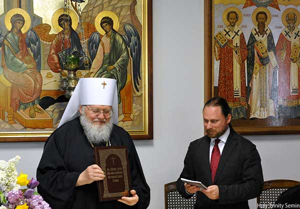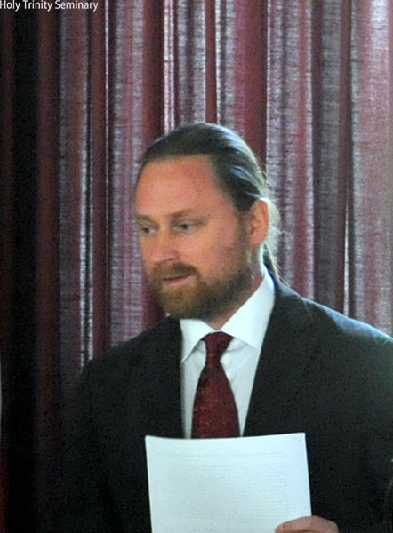 HTS’ Rector, Archimandrite Luke, officially declared the ceremony open. He gave some encouraging words to the graduates. Metropolitan Hilarion gave the next address to the seminarians. Third came the keynote speaker, Sergey Chapnin, senior editor of the official Moscow Patriarchate magazine. Mr. Chapnin, as an eminent journalist of Church matters, had much to say about contemporary religious thought in Russia and the current state of post-communist Russia concerning religious matters. He addressed challenges that the Russian Orthodox Church is facing today.