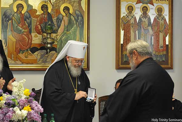 At the conclusion of Mr. Chapnin’s address, Bachelor of Theology degrees were awarded to the candidates. Before awards for excellent academic performance among all students were given, Vladika Hilarion awarded Protodeacon Victor Lochmatow the Synodal Znamenskij Order