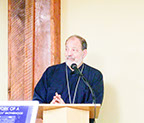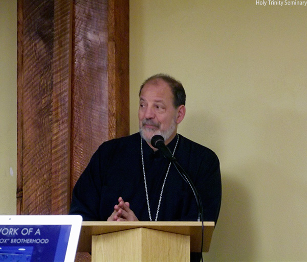 Fr. Stephen Vernak of Christ the Savior Orthodox Church in Harrisburg, PA gave the first presentation on Friday evening, on “The Work of a 'Pan-Orthodox” Brotherhood”. Fr. Stephen, former president of OISM, first spoke about his experiences as a seminarian and participant of OISM: “We know of the various stereotypes thrown about regarding the different Orthodox seminaries, but participating in OISM disabuses us of these notions.” He spoke about a trip to Alaska, as well as the Fall 2006 OISM meeting at Holy Trinity Seminary, where the OISM members were warmly welcomed by Metropolitan Laurus of blessed memory. He then spoke about the cooperation in organizing events and charity work by the Orthodox Christians of the Greater Harrisburg area, including the establishment of the Agia Sophia Coffee House and Bookstore. The non-profit coffee house, now in its second year, caters to a diverse patronage in Pennsylvania’s capital: “There are politicians, clerks, accountants, students, homeless people…We run the gambit.”