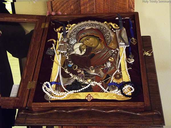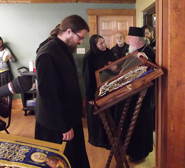 The next morning, members of OISM attended the Divine Liturgy at the monastery church followed by breakfast in the seminary refectory. After breakfast, the OISM attendees met with Archimandrite Athanasy (Mastalsky), the guardian of the myrrh-streaming icon of St. Anna. Fr. Athanasy, now in residence at St. Tikhon’s Monastery, spoke on the holy icon and the priestly ministry of spiritual healing.