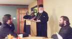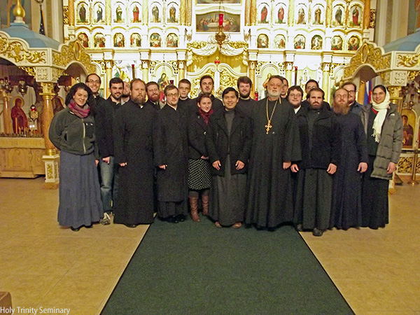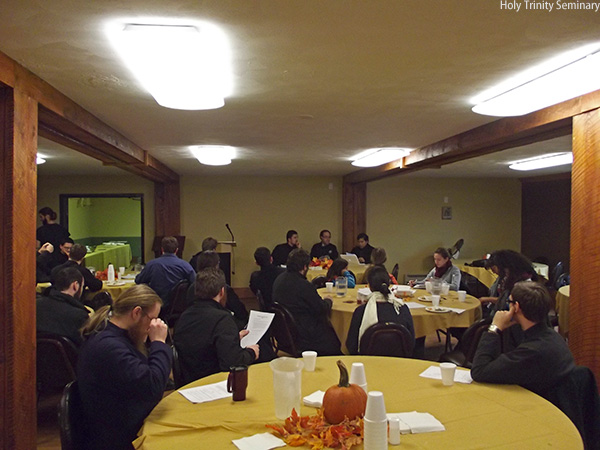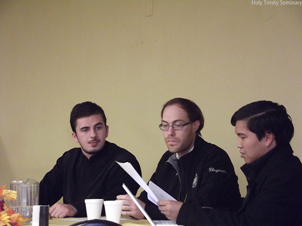 On the weekend of November 9–11, 2012, four students from Holy Trinity Orthodox Seminary participated in the Fall Meeting of the Orthodox Inter-Seminary Movement (OISM), held at St. Tikhon’s Orthodox Theological Seminary in South Canaan, Pennsylvania. Third-year students Srdjan Puskar and John Martin (both officers of OISM) and second-year students Stanislav Matveev and Stefan Stoyanov represented the seminary at the meeting.