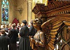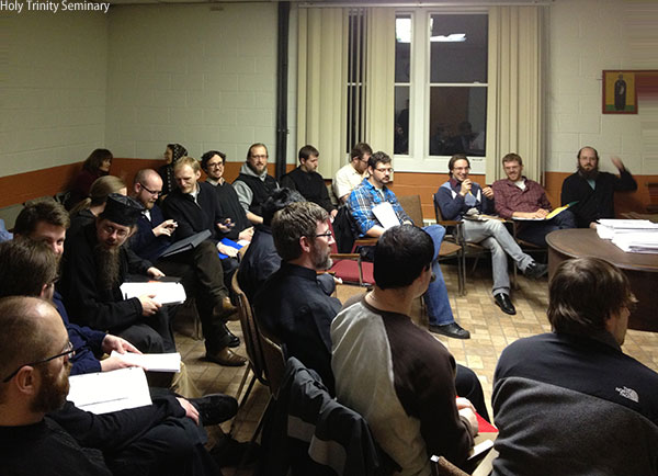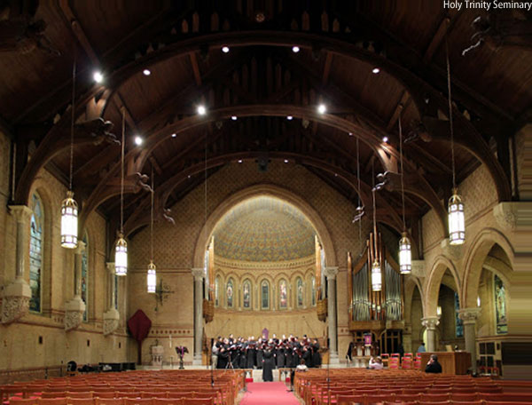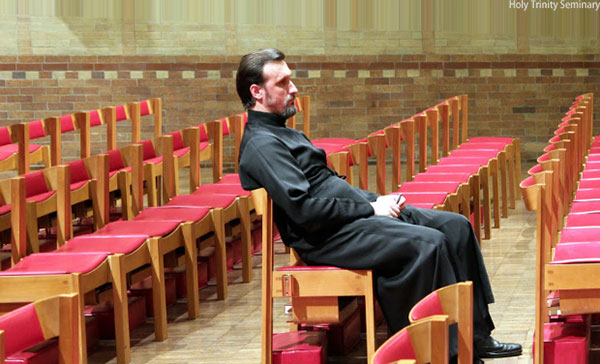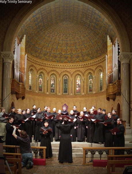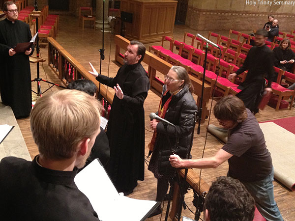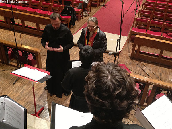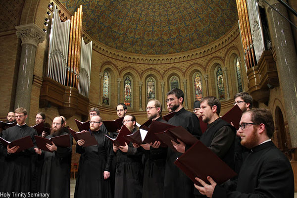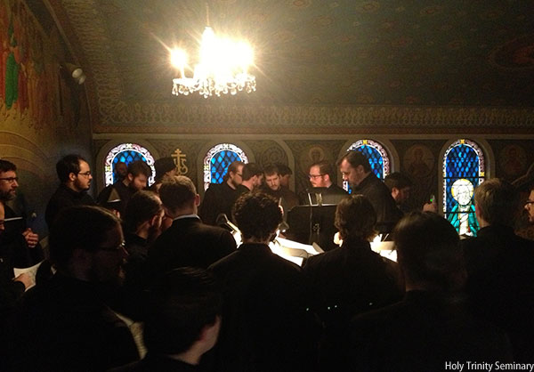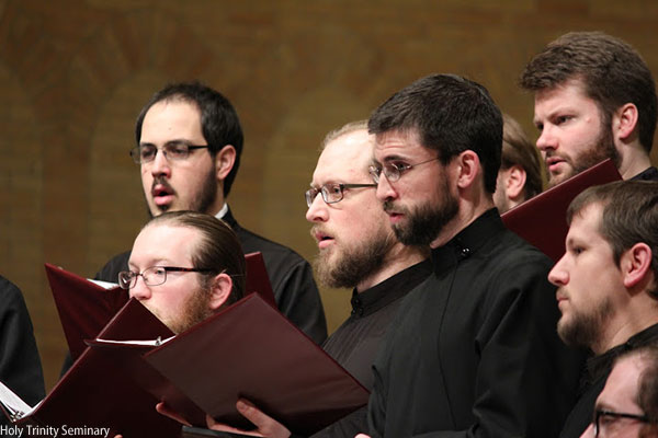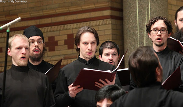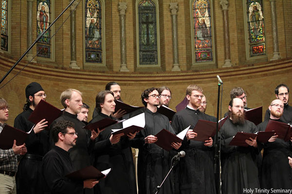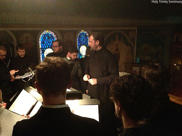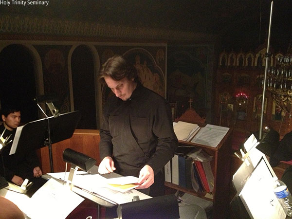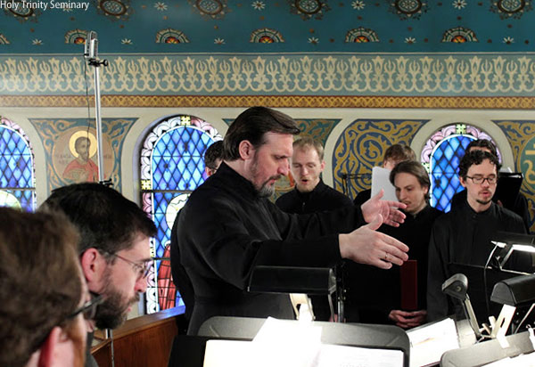 On March 3, 2013, singers from Holy Trinity, St. Tikhon’s, and St. Vladimir’s Seminaries joined together for the first time to sing a concert under the direction of Vladimir Gorbik, the choir director at the Moscow Representation Church of the Holy Trinity St.Sergius Lavra. The concert commemorated the 75th anniversary of St. Tikhon’s and St. Vladimir’s, and well as the 65th anniversary of Holy Trinity Seminary; it was held at the St. Stephen’s Episcopalian Pro-Cathedral in Wilkes-Barre, Pennsylvania. Four members of the Holy Trinity Seminary Choir sang at the concert: Fr. Deacon Ephraim Willmarth, Peter Markevich (fifth-year), Nicholas Kotar (fourth-year), and John Martin (third-year).