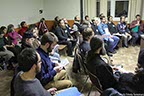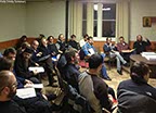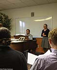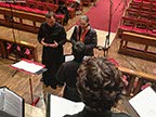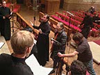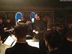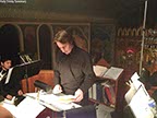 In preparation for the concert, Maestro Gorbik prepared the 25 singers over three days of rehearsals at St. Tikhon’s Seminary in South Canaan, Pennsylvania. This Master Class was a sequel to an earlier workshop that Gorbik held at St. Vladimir’s Seminary last summer. The repertoire was a challenging mix of Russian sacred music in both English and Church Slavonic. Maestro Gorbik strictly guided the combined choir through each piece, correcting pitch, rhythm, diction, and other subtle nuances.