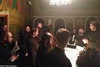 The choir also sang the weekend divine services at the St. Tikhon’s Monastery Church, under Gorbik’s direction. His Beatitude Metropolitan Tikhon of the Orthodox Church in America celebrated at both the vigil and liturgy. All the pieces sung at the concert were also sung at the divine services. After the Saturday vigil, the monastery prepared a meal for the singers and worshippers in attendance, and Maestro Gorbik gave a talk and answered questions about his work.