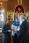 The choir of St. Jonah Church, under the direction of Ms. Demetra Short, sang a selection of hymns dedicated to the feast days of the Mother of God. The singing was complemented with commentary by Kurt Sander on the musical selections and text, and Iconographer John Lickwar on the corresponding icon. The choral presentation filled the church to capacity with one hundred and fifty plus and additional attendees having to stand outside. The choral concert work of Nicholas Kotar, now student at Holy Trinity Seminary, inspired the format of our choral presentation. We express our gratitude to his ground breaking work.